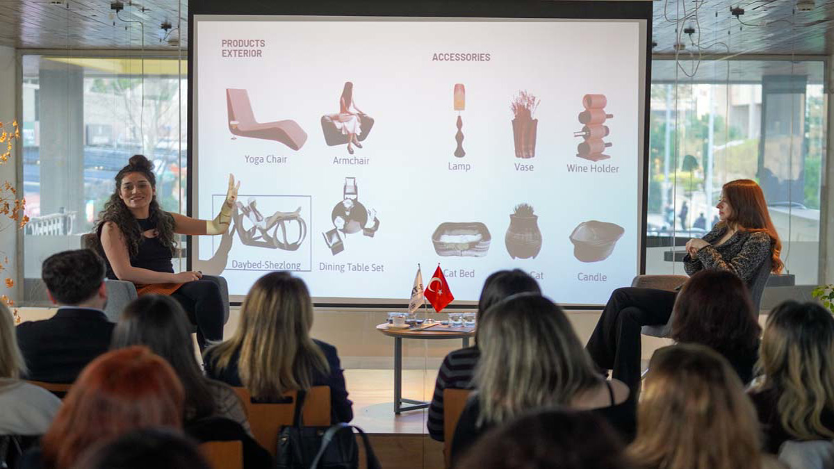 Dilek Bartın, programda geri dönüştürülmüş malzemelerden özel kompozit üretim sürecini anlatarak, bu malzemeleri yeni bir geleceğin parçası haline getiren çalışmalarını paylaştı. Betül Karaca ise 3D yazıcı teknolojisiyle tasarımı ürüne ve mekâna dönüştürdüğü büyük ölçekli mobilya üretim örneklerini katılımcılara aktardı. Ayrıca iki kadın girişimci, teknolojinin ve sürdürülebilir üretimin nasıl ilham veren bir değişim gücüne dönüşebileceğini ortaya koydu. Programın sonunda düzenlenen soru-cevap bölümünde ise katılımcıların soruları yanıtlandı.